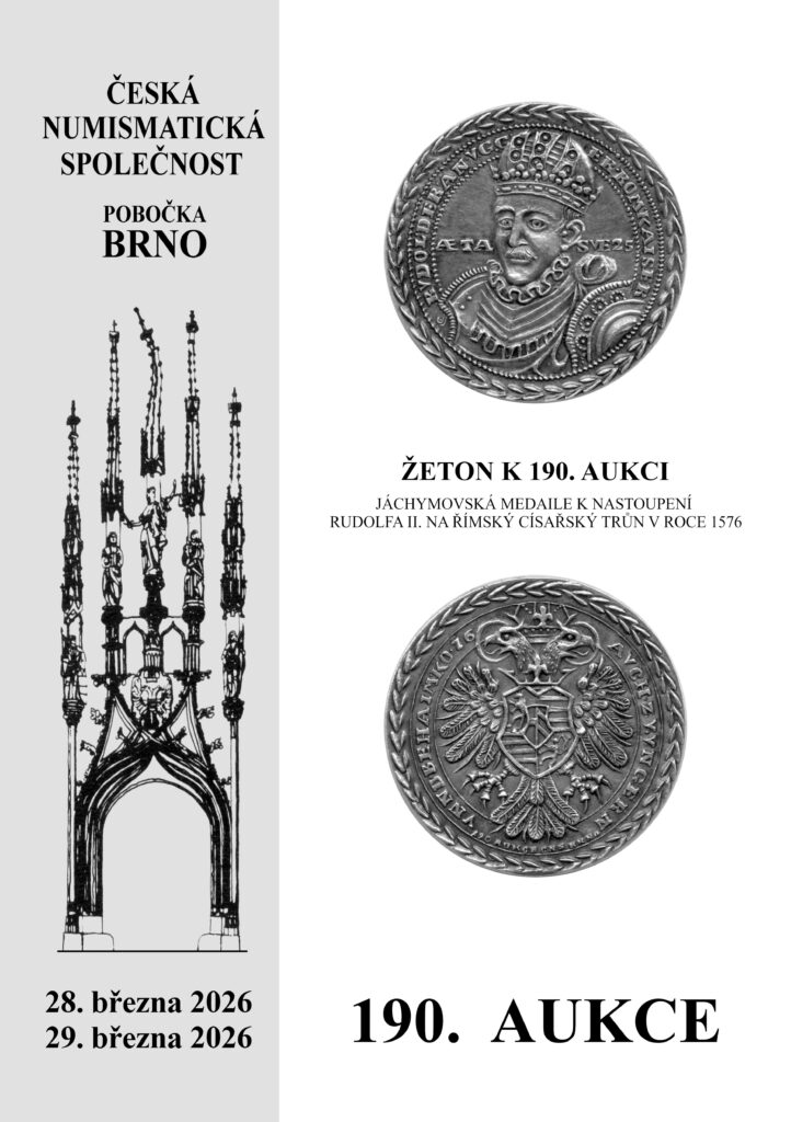 Vážené kolegyně a kolegové. Dovolujeme si Vás informovat, že 190. aukce ČNS pobočky v Brně proběhne jako dvoudenní, plně elektronická, živá aukce, a to 28. 3. 2026 od 9:00 a 29. 3. 2026 od 15:00, prostřednictvím aukční patformy OneBid.